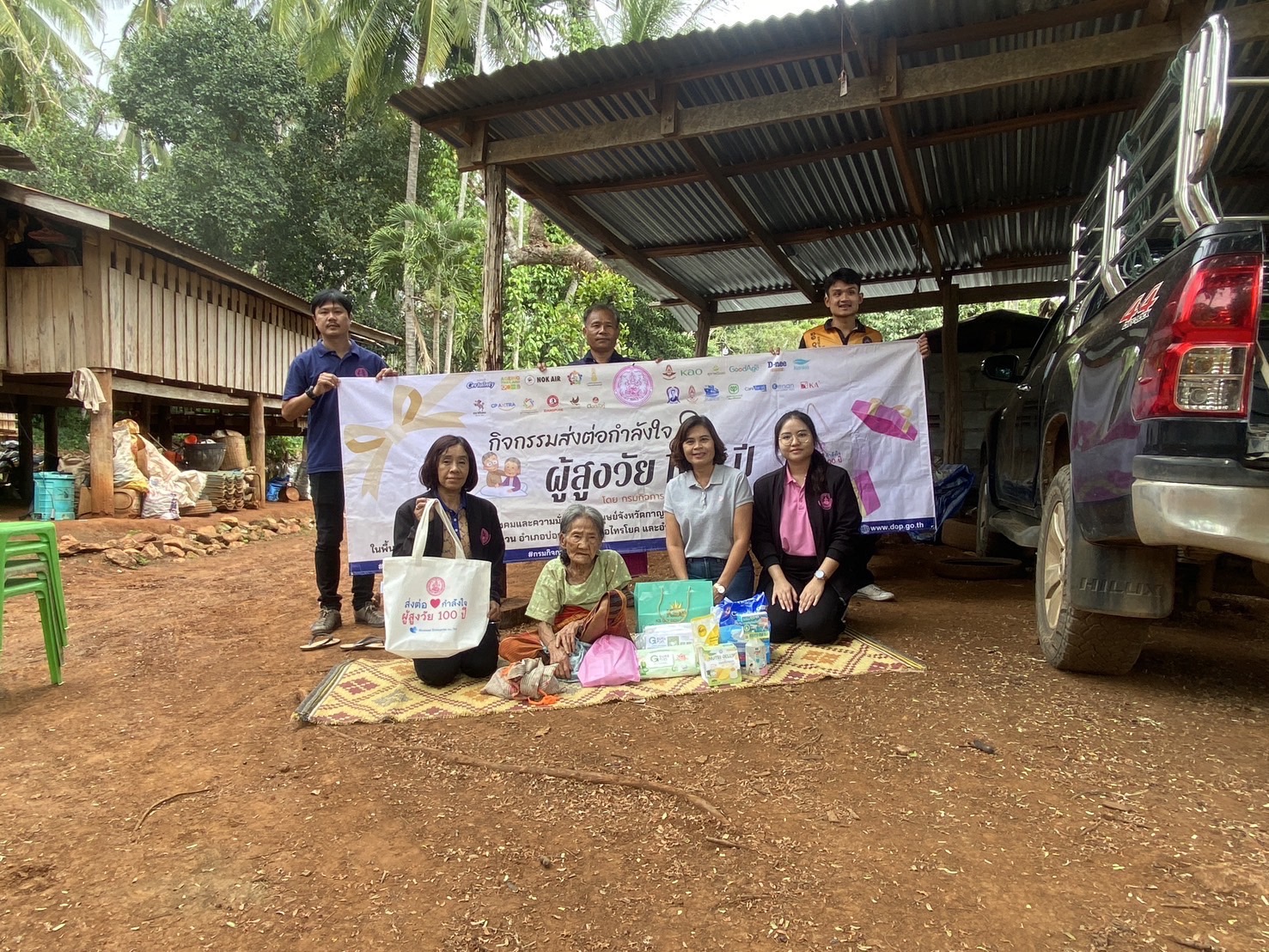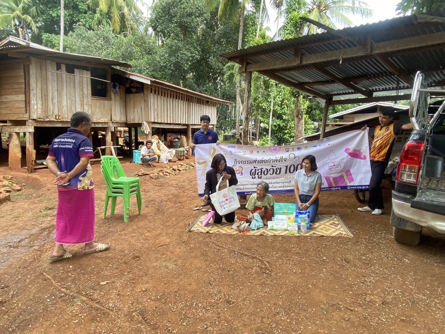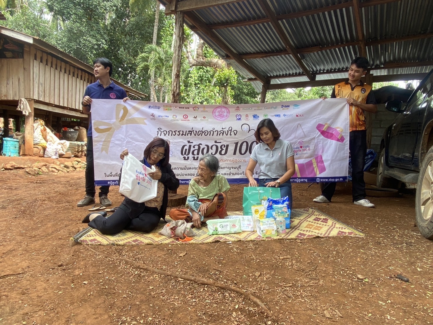 สำนักงานพัฒนาสังคมและความมั่นคงของมนุษย์จังหวัดกาญจนบุรี มอบของขวัญส่งต่อกำลังใจผู้สูงวัย 100 ปี ให้แก่ผู้สูงอายุในเขตตำบลเขาโจด จำนวน 1 ราย ได้แก่ นางไช่มื้อเอ่ง สุจริตวิเศษสกุล อายุ 101 ปี อยู่บ้านเลขที่ 16/1 หมู่ 2 ตำบลเขาโจด อำเภอศรีสวัสดิ์ จังหวัดกาญจนบุรี ปัจจุบันท่านมีสุขภาพร่างกายแข็งแรง จิตใจแจ่มใส สามารถช่วยเหลือตนเองได้ แต่มีความพิการทางการได้ยิน